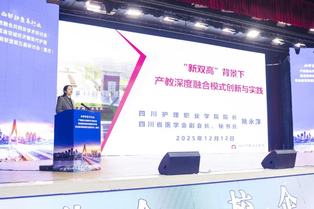 12月12日,由四川护理职业学院和重庆护理职业学院牵头成立的成渝双城经济圈现代护理职业教育联盟在重庆市璧山区召开第五届研讨会(重庆),重庆市教育委员会、重庆市卫生健康委员会、重庆市璧山区人民政府、四川护理职业学院、重庆护理职业学院以及川渝两地护理职业教育领域核心院校等单位400余位嘉宾代表齐聚一堂,共商现代护理职业教育高质量发展路径。大会由重庆护理职业学院副校长谢莉玲主持。