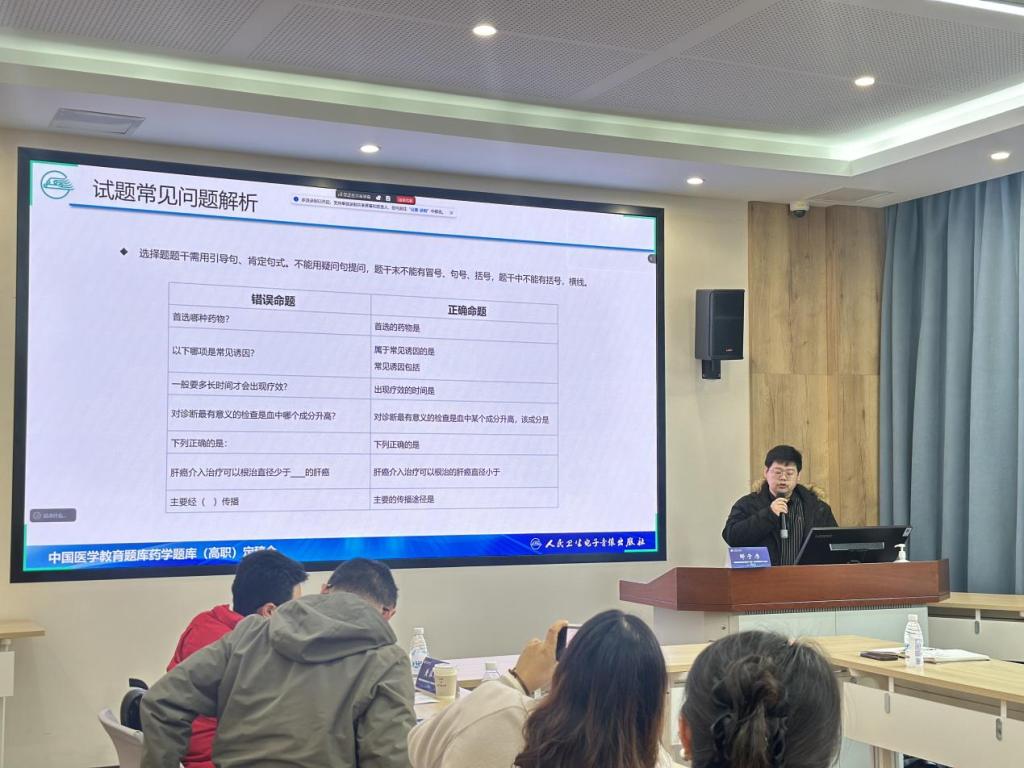 本次定稿会讨论务实高效,充分体现了跨院校、跨区域协作的共建共享发展理念,达到统一思想、明确标准、解决问题的预期目标。《临床药物治疗学》题库建设是我校推进“新双高”建设与教学评估改革的关键抓手,通过标准化考核、教考分离与数字化应用,强化实践能力导向的教学评价,为教学质量持续改进提供了精准的数据支撑,服务高素质技术技能人才的培养目标。