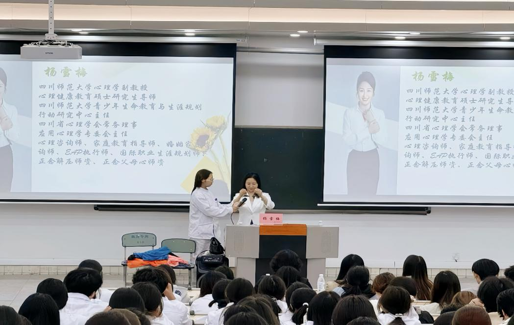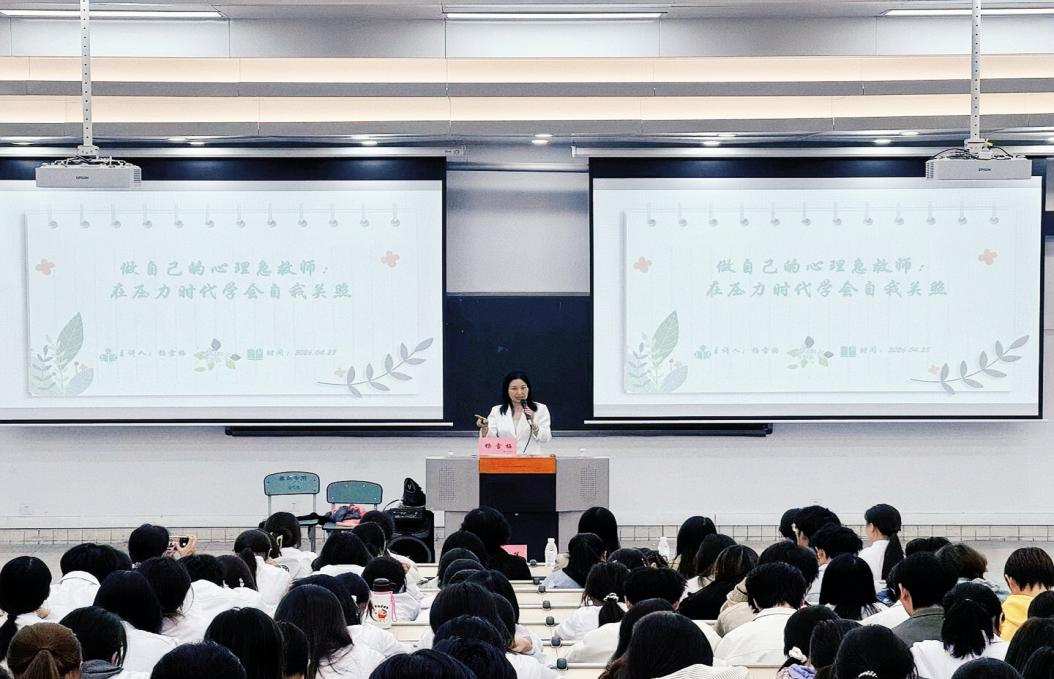 为提升学生心理调适能力与自我关照意识,4月28日,康复学院在成都校区举办《做自己的心理急救师:在压力时代学会自我关照》专题讲座。讲座由四川师范大学心理学副教授、四川师范大学青少年生命教育与生涯规划行动研究中心主任杨雪梅主讲,康复学院、医技学院师生代表近300人参加。