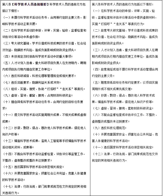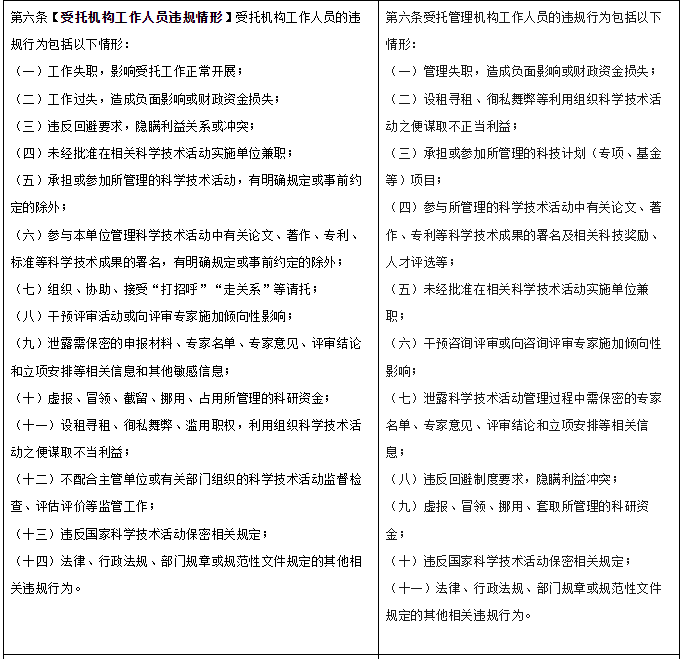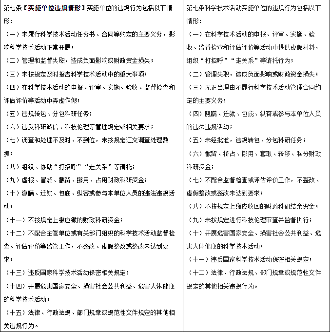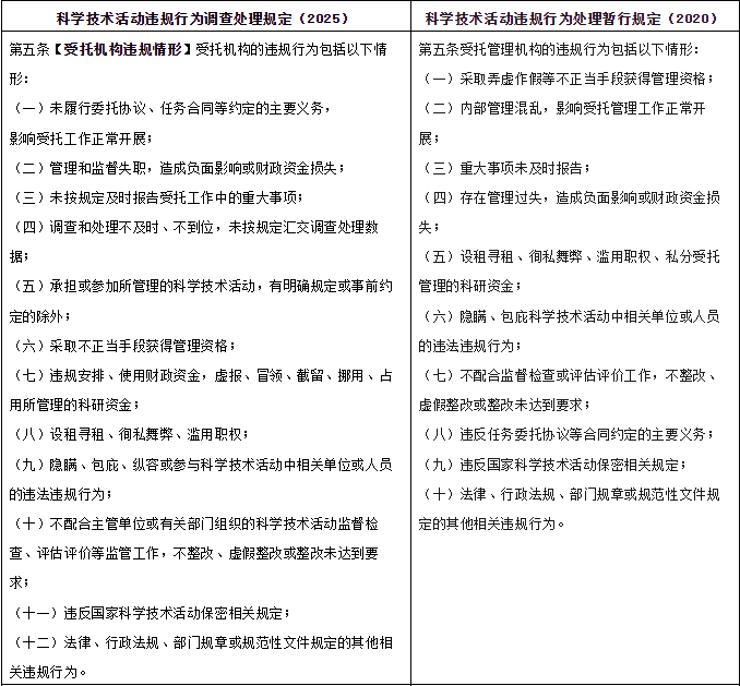 6类科技活动机构人员违规行为新旧对比(2025/2020)